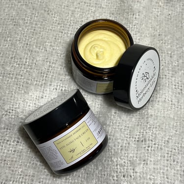 “ I just received both the Anti-Aging Face Cream and the Herbal Healing Salve and already love them both! If you’re on the fence about these products, they’re amazing with wonderful smell, texture and ingredients. Your dry skin will thank you!”
